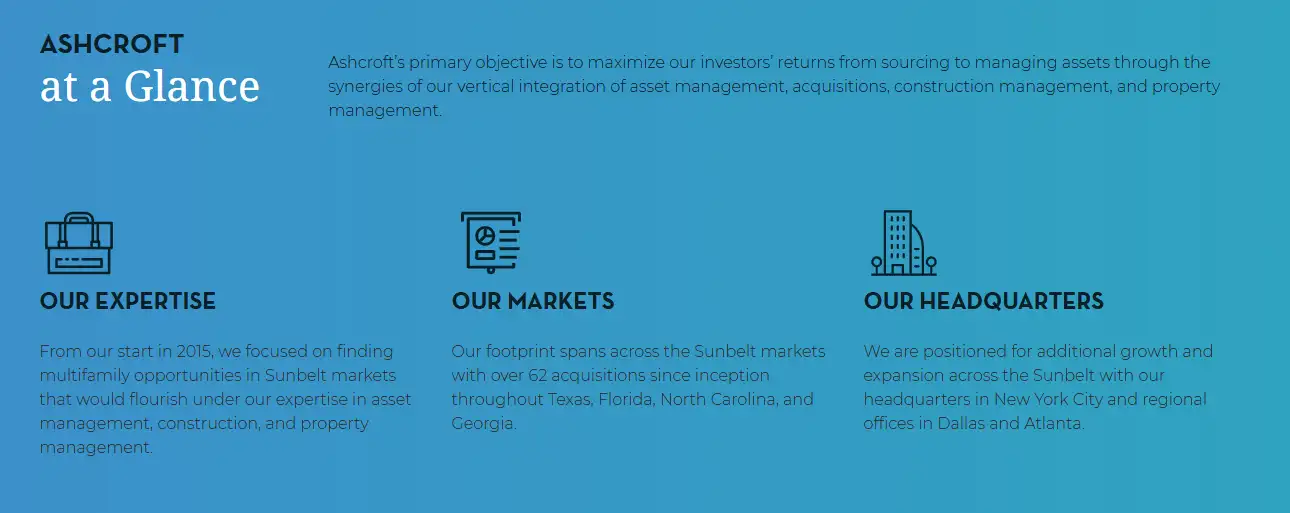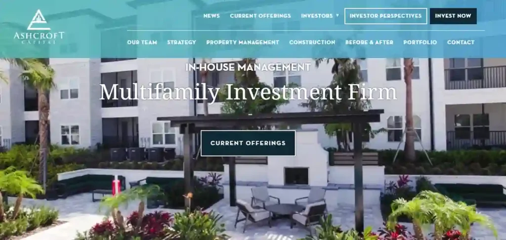 The image shown above exemplifies the Ashcroft Capital webpage, a multifamily real estate investment firm.