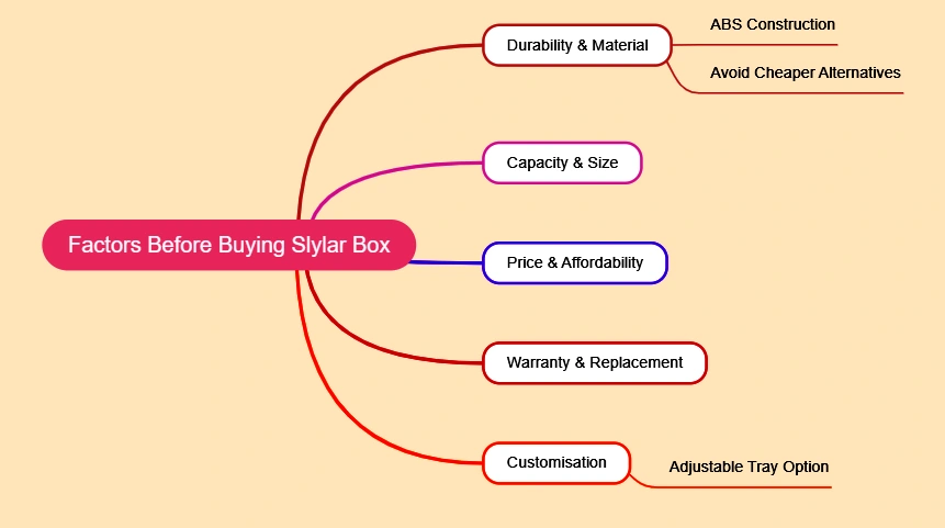 • Durability & Material checking: Choosing a durable material with proper checking of material quality, like ABS construction, are invaluble before buying it. It is advisable to never go for a cheaper alternative, as it won’t guarantee long-term lasting. Cheaper imitations, despite looking similar to Slylar Box, are not advisable for purchase.