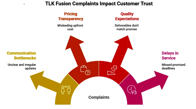 Customers have lodged their complaints against TLK fusion for communication issues and the offered service quality. Understanding the basic purpose of the complaints is invaluable, as they guide future clients to decide what to do next from others’ experiences. The complaints stem from communication issues, delayed delivery of services, and concerns with pricing transparency. Let’s examine the nature of complaints to gain a glimpse of the clearer picture of the service offered by TLK Fusion.